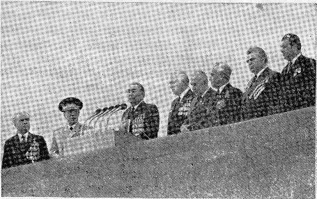 Торжественный митинг, посвященный, открытию музея. Выступает Генеральный секретарь ЦК КПСС, Председатель Президиума Верховного Совета СССР товарищ Л. И. Брежнев. На трибуне: члены Политбюро ЦК КПСС товарищи В. В. Гришин, Г. В. Романов, Д. Ф. Устинов, В. В. Щербицкий, члены Политбюро ЦК Компартии Украины товарищи А. Ф. Ватченко, А. П. Ляшко, И. 3. Соколов. 9 мая 1981.